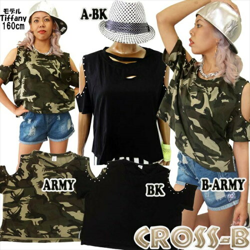 オープンショルダースタッズ付Tシャツ(A0541)CROSS-B